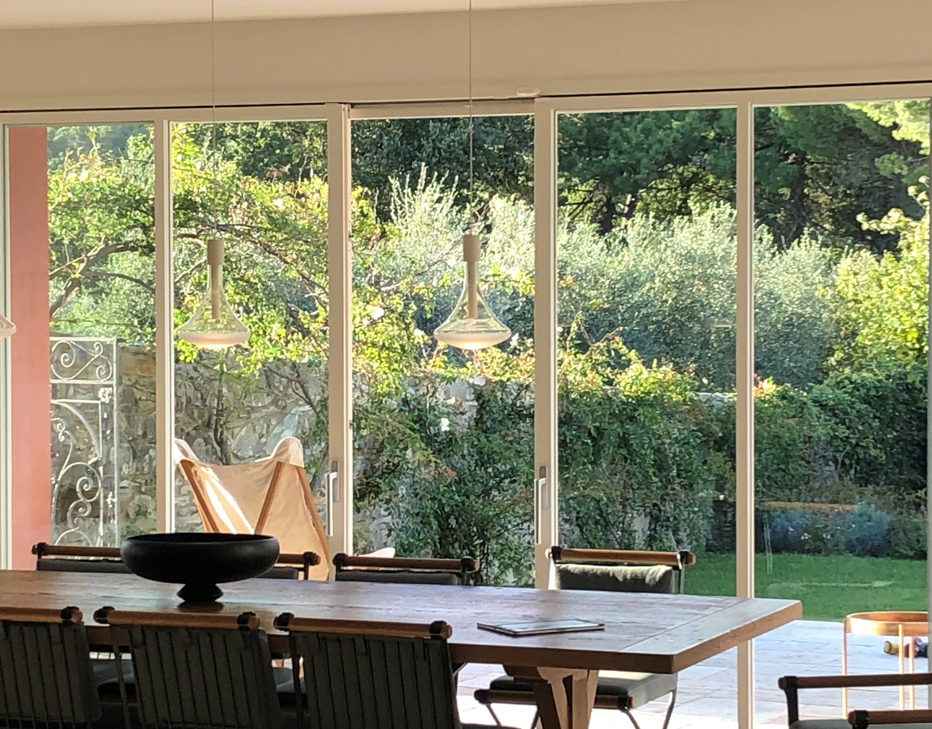 Renovation of a large estate situated in a panoramic position on Montemarcello hill in Liguria from which one can admire the Apuan Alps southward and Porto Venere northward. The property consists in several, scattered small houses and a main villa that developed around an ancient watchtower as a spontaneously grown body resulting from additions through time. The genesis of the project, which also complies with the βtendenciesβ of the local landscaping commission, foresees the recovery of all the bodies in the estate paying particular attention to the main villa, where the work concentrates on realizing an ample open-space on the ground floor which hosts the kitchen and dining room facing the garden through wide glass doors.