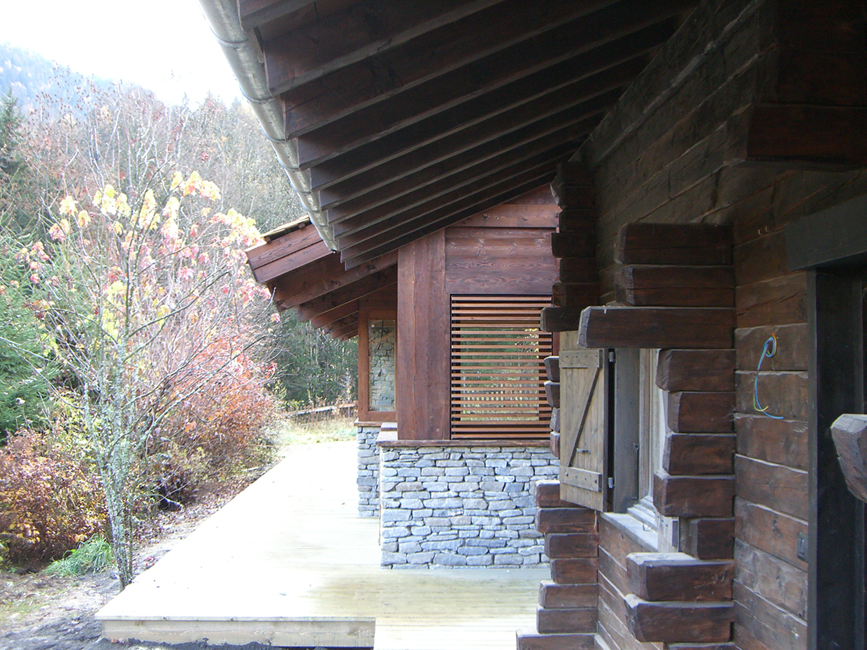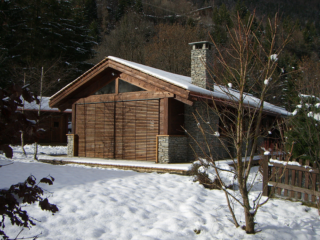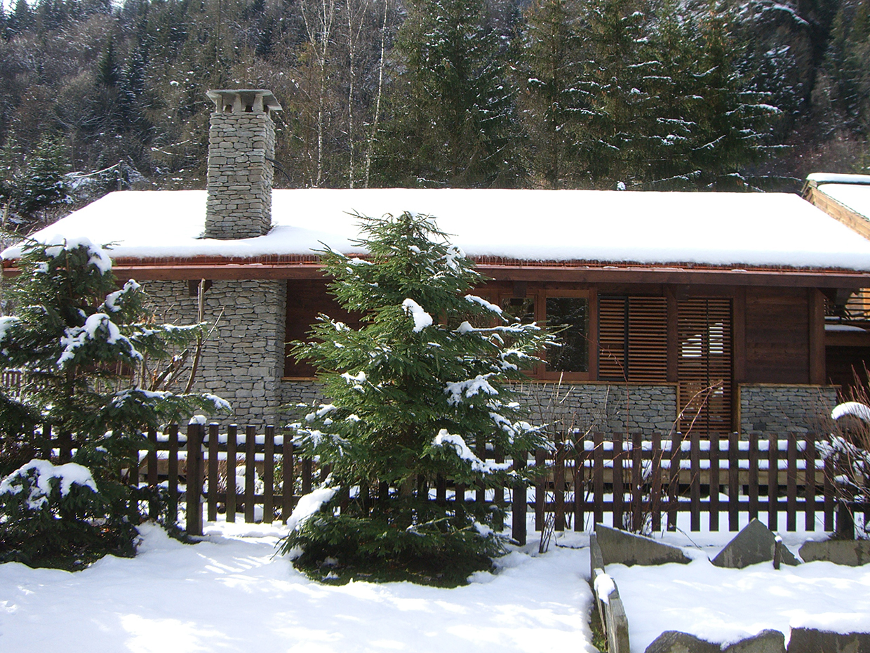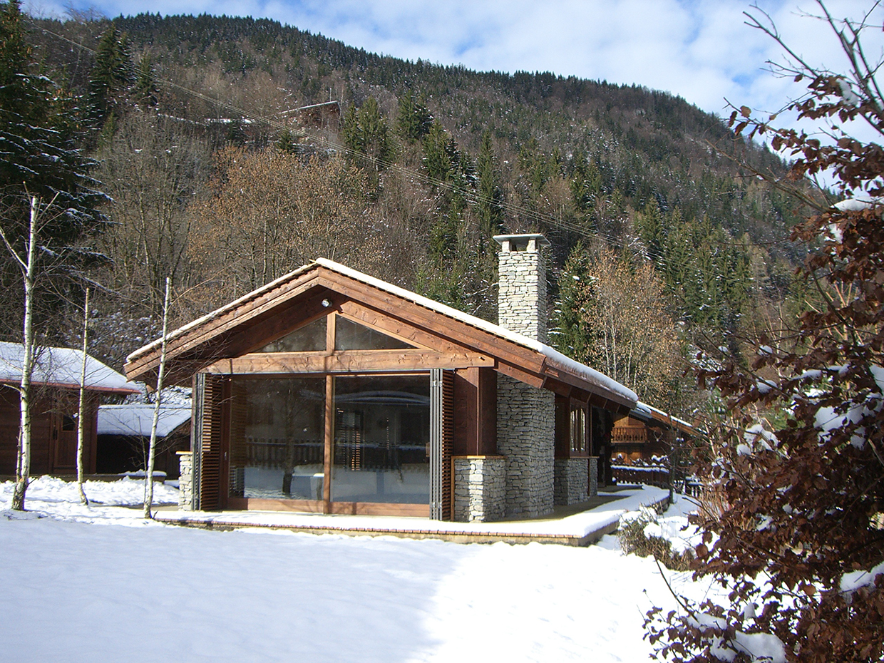 Expansion project focussed on integrating the original body with new elements according to a logic of addition, generating a new organism without disrupting the existing chalet. Facing south towards the Mont Blanc an open-space merges living and dining room with kitchen whereas the relax area with sauna and thermal pool faces north. The original chalet is converted into sleeping area. A large south-facing window allows the mountains, snow and trees to be the living room βbackdropβ.
