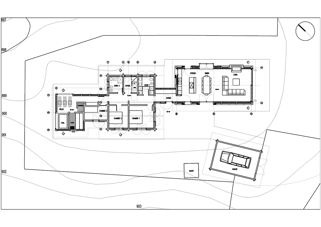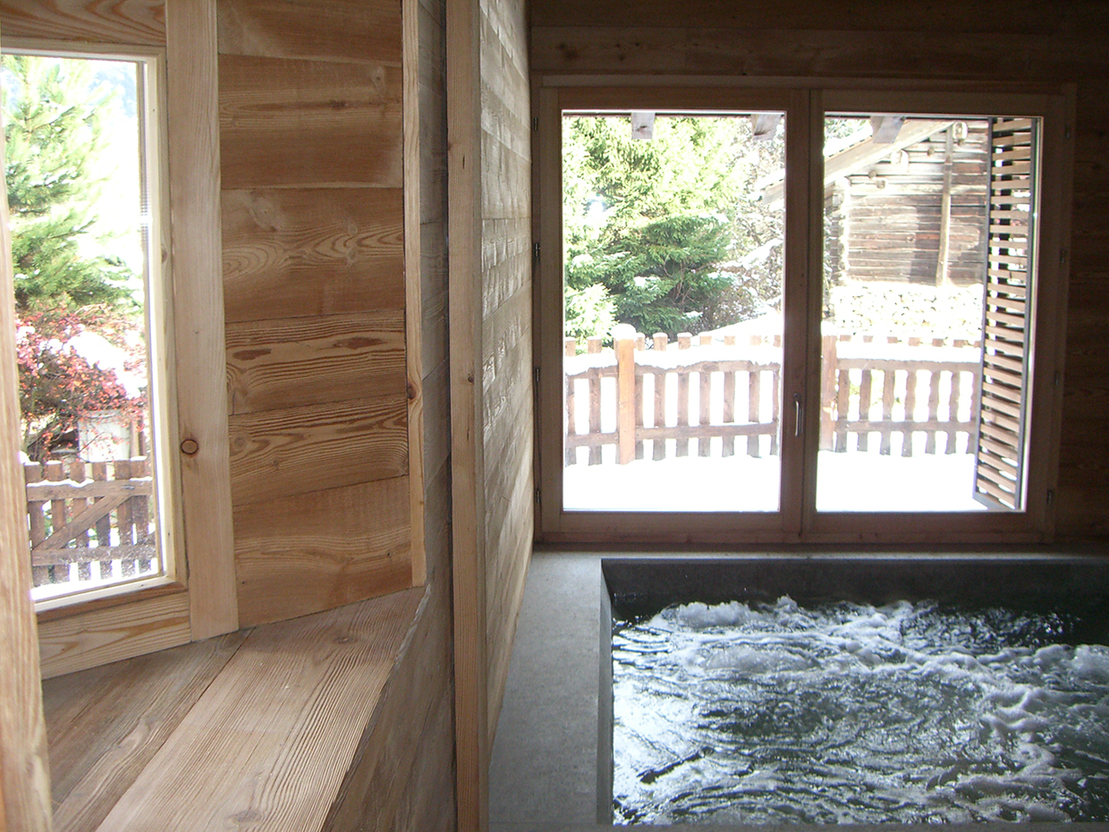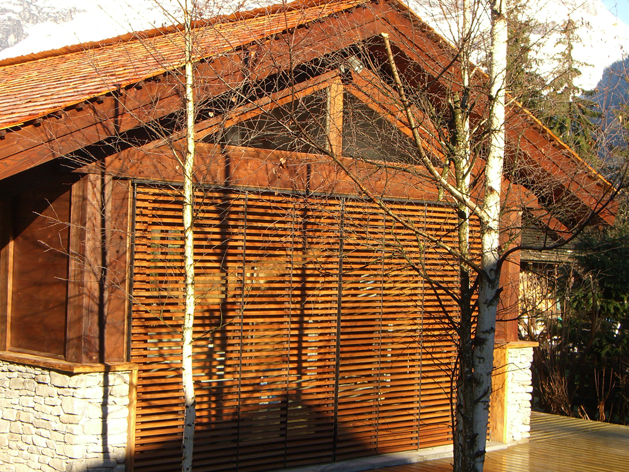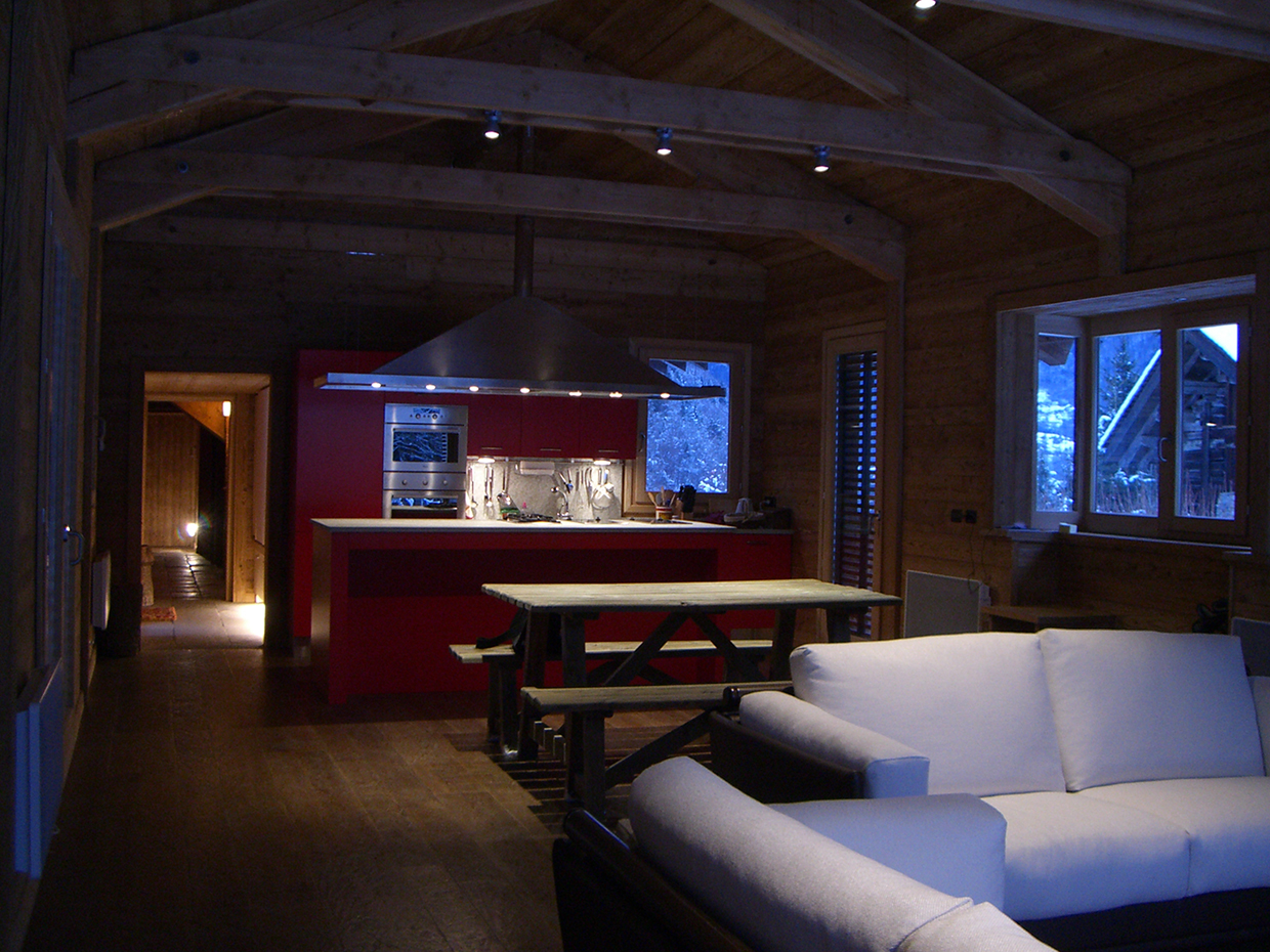 Expansion project focussed on integrating the original body with new elements according to a logic of addition, generating a new organism without disrupting the existing chalet. Facing south towards the Mont Blanc an open-space merges living and dining room with kitchen whereas the relax area with sauna and thermal pool faces north. The original chalet is converted into sleeping area. A large south-facing window allows the mountains, snow and trees to be the living room βbackdropβ.