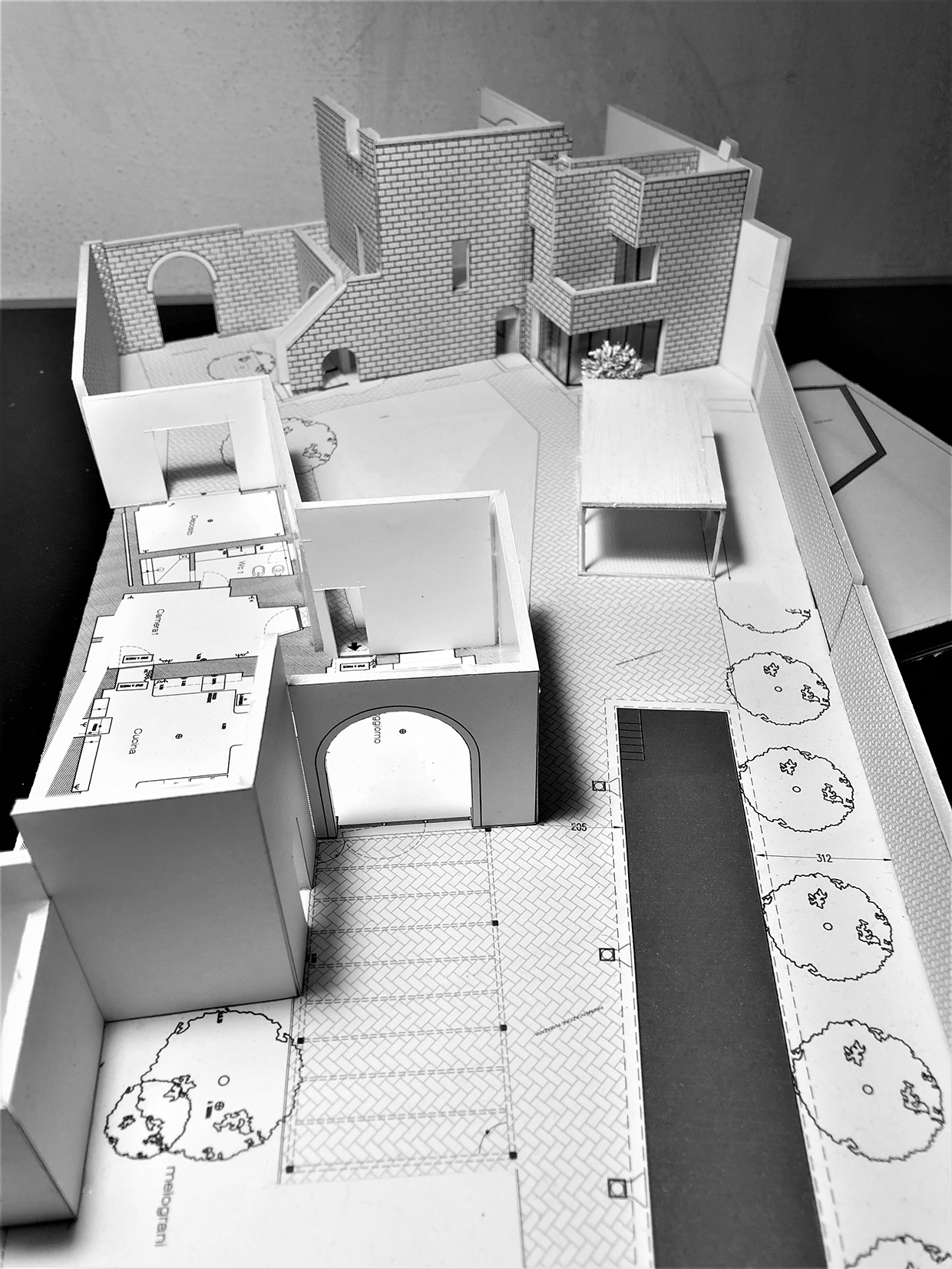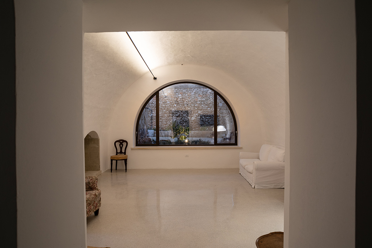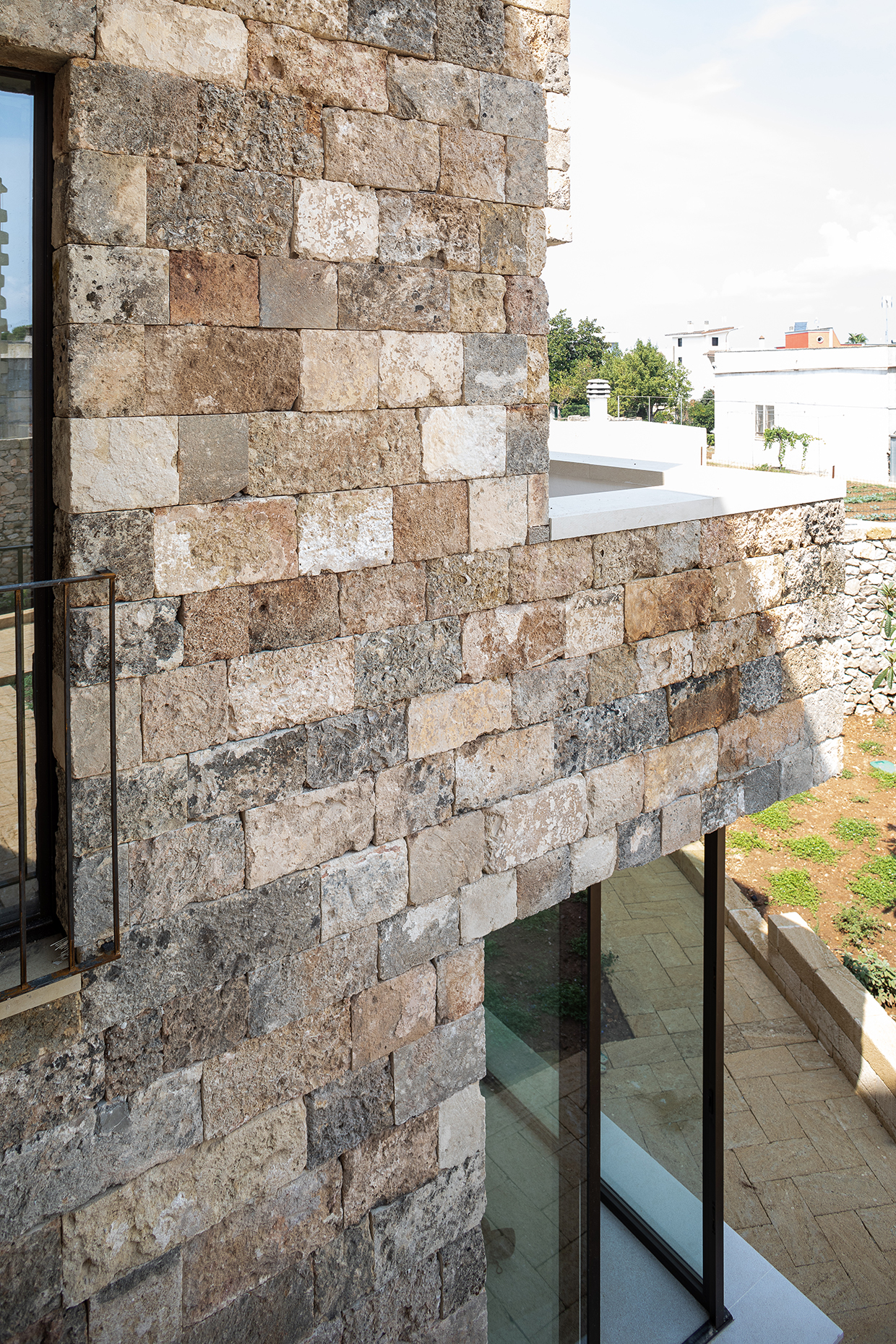 The property, an ancient tower and a small masseria (fortified farmhouse) surrounded by land, is located in Gemini’s historic core, a village in southern Salento (Apulia). The project aims to renovate and enlarge the tower and the masseria, to transform the land into a garden and to realize a swimming pool. The tower needed internal stairs and facilities that were added in a small annex, which allowed not tampering the tower. The new body also establishes a new relation with the garden. Old tuff recovered locally was used as façade cladding thereby obtaining a mimesis with the pre-existing buildings. The transformation of the vegetable garden into a garden with swimming pool induces opening to new views. Thus the masseria has also undergone modifications to face it towards the garden. Both buildings are planned as autonomous dwellings.